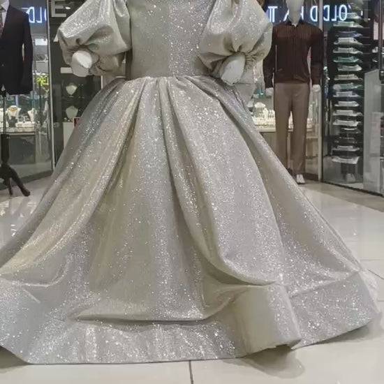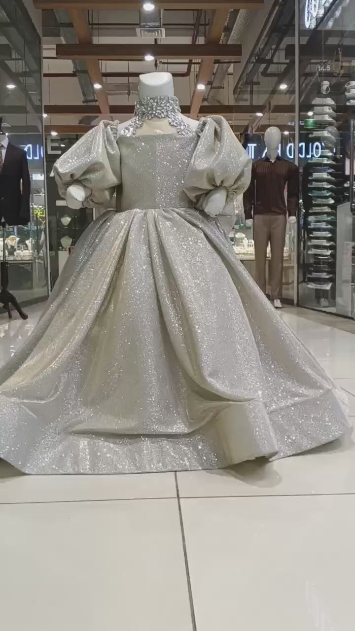 Royal Silver Sparkle Gown – Elegant Crystal Neck Party Frock for Girls & Teens